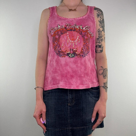 Y2K vintage sequin elephant tank top graphic print pink tie dye
