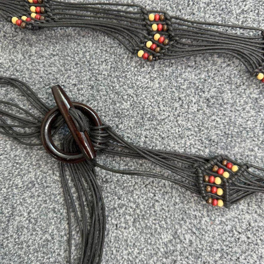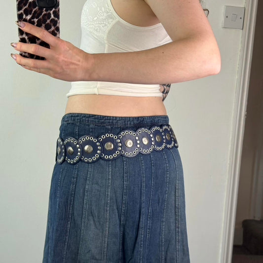 Y2K vintage navy disc circle belt grommet boho festival silver faux leather