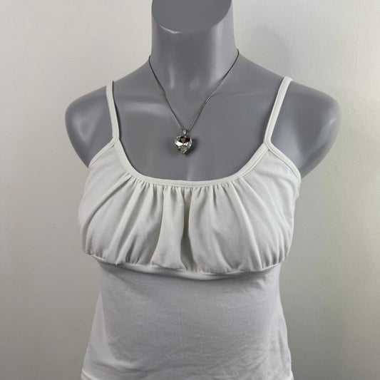 Y2K vintage milkmaid mesh white cami top cropped ruched bust strappy