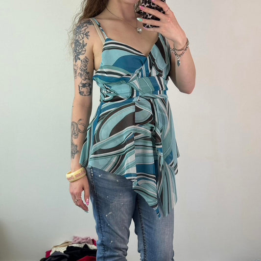 Y2K vintage mesh swirly cami top asymmetrical pattern v neck floaty flowy summer