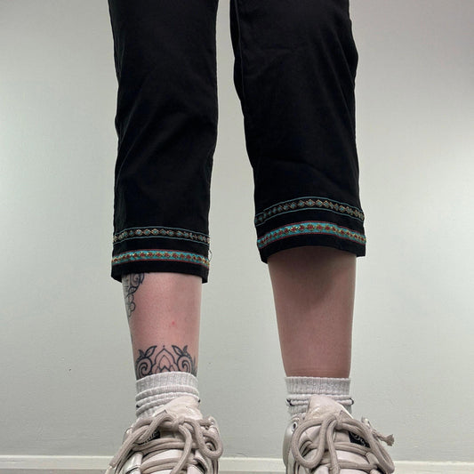 Y2K vintage mid rise cargo trousers floral bird embroidered capri cropped baggy