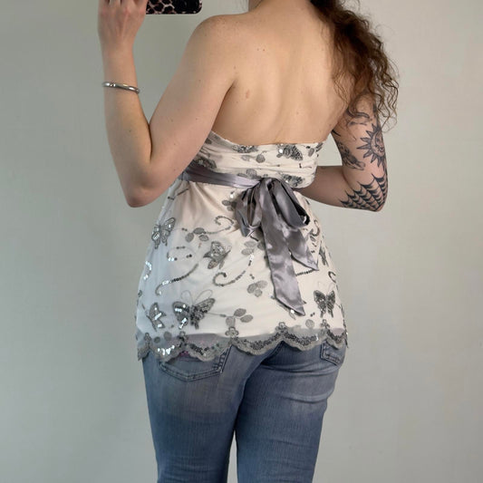 Y2K vintage strapless sequin butterfly mesh bow top festival summer party