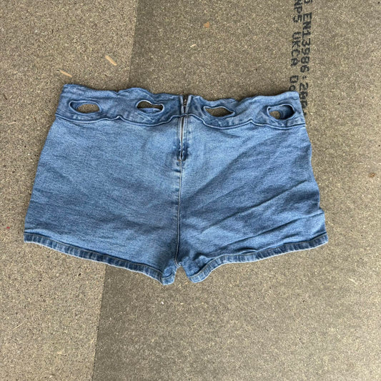 Y2K vintage stretchy denim mini shorts cut out mid rise