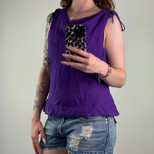 Y2K vintage cowl neck tank top ruched bow double layer sheer sleeveless