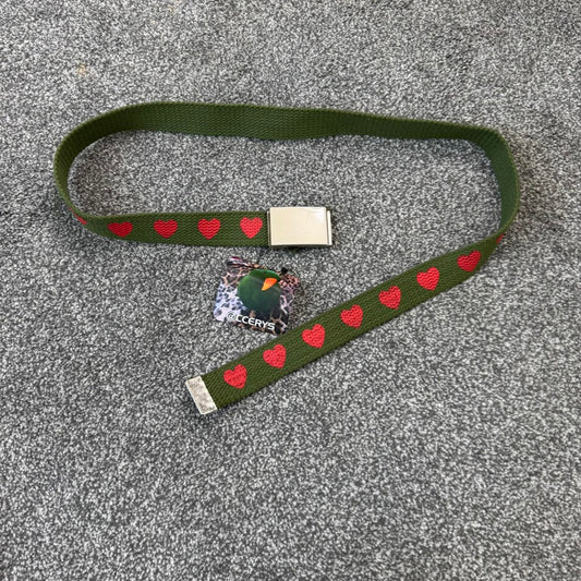 Y2K vintage canvas heart belt khaki red print adjustable