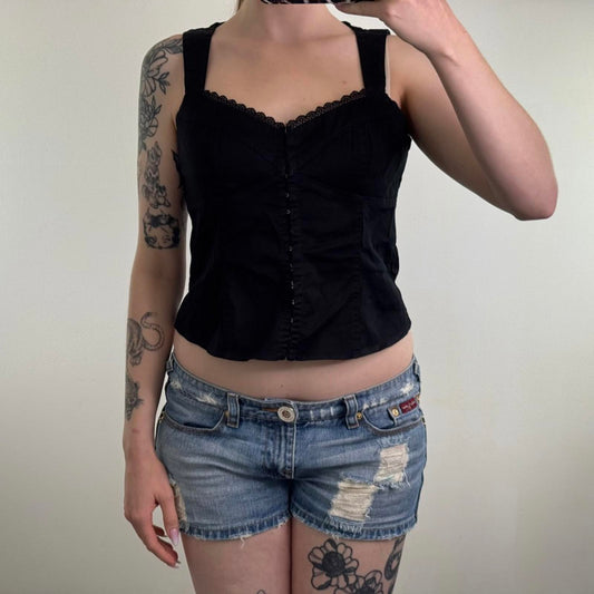 Y2K vintage corset style top hook and eye lace trim stretchy fitted