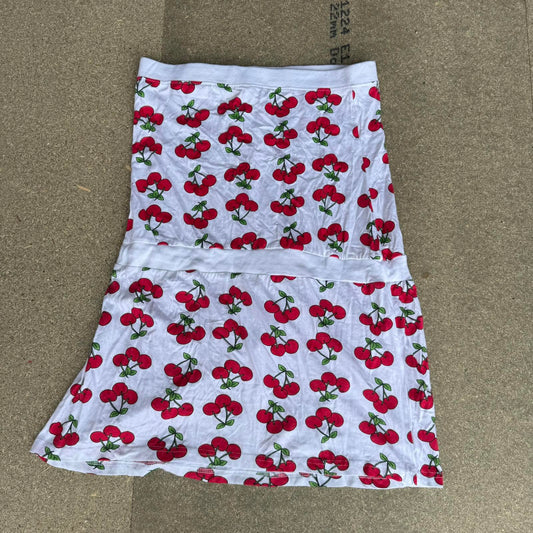 Y2K vintage cherry strapless mini dress stretchy jersey bow cherries print