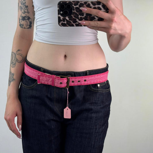 Y2K vintage canvas lace grommet hot pink belt