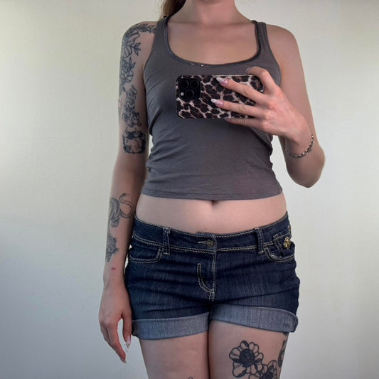 Y2K vintage butterfly sequin tank top cropped round neck