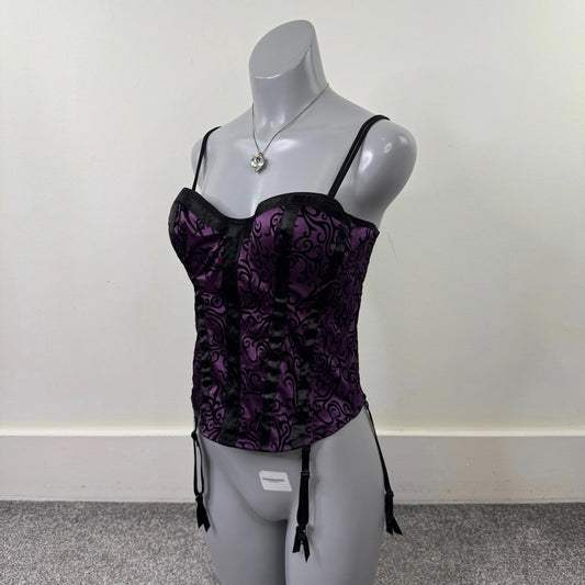 90s Y2K vintage corset top filigree gothic purple black velvet double straps