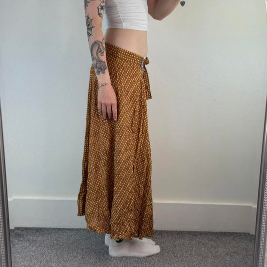 90s vintage polka dot wrap around style maxi skirt a line flowy lightweight belt