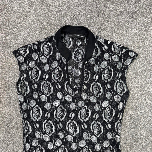 90s Y2K vintage mesh halter neck top double layer abstract circle pattern print