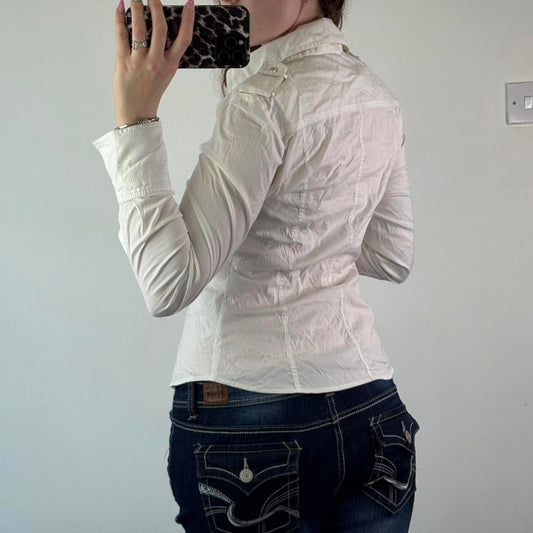 2011 Karen Millen fitted stretchy lace up bust shirt blouse long sleeve white