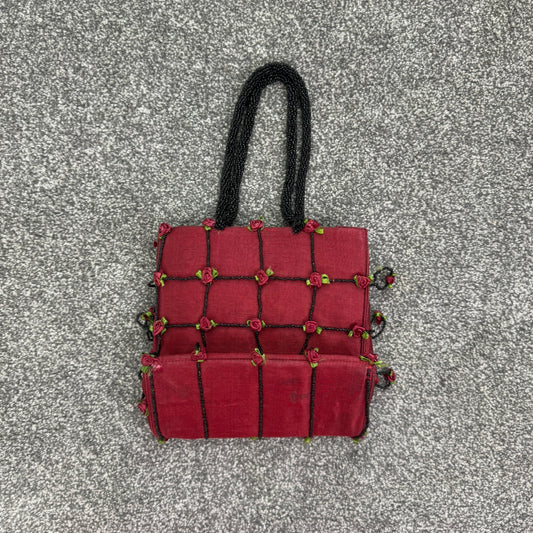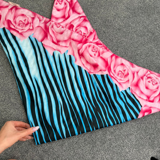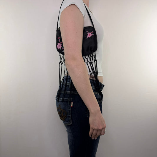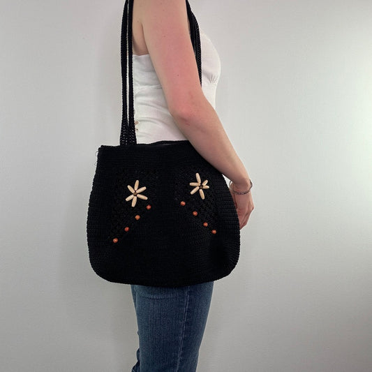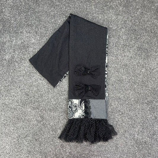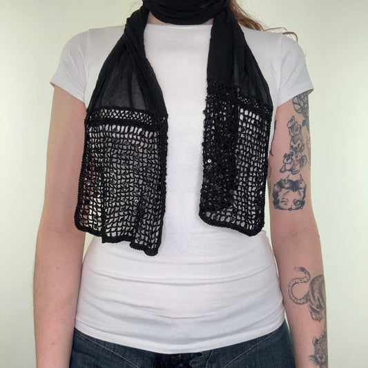 Y2K vintage black skinny sheer scarf crochet sequin trim