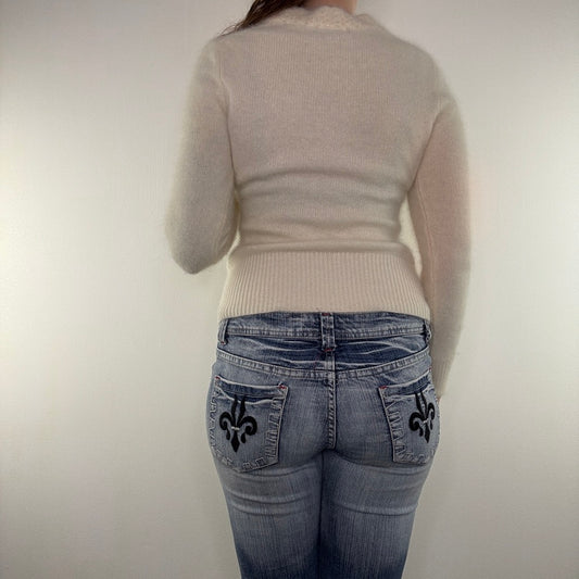 Y2K vintage Abercrombie & Fitch cardigan button up knit faux fur collar mcbling