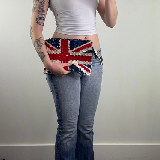 Y2K vintage Union Jack sequin clutch bag buttons beaded party wristlet