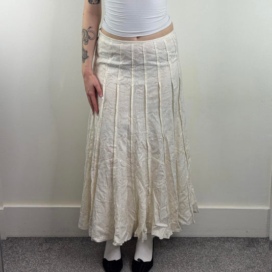 Y2K vintage linen blend maxi skirt floral pattern sequin beaded a line pleated