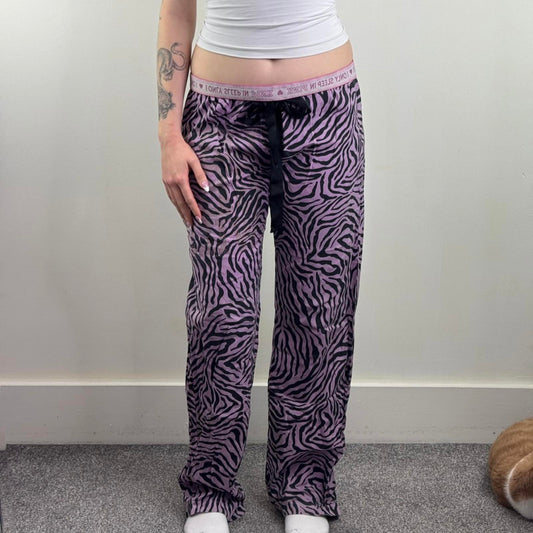 Vintage Victoria Secret PINK pyjama bottoms zebra print baggy bow purple black