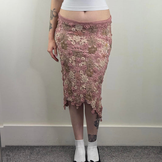 Y2K vintage Karen Millen crochet midi skirt floral beaded double layer low rise