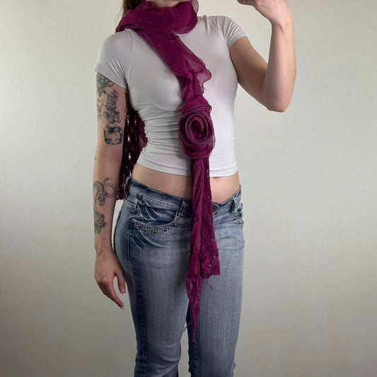 Y2K vintage rose fine knit ruffle scarf 3D rose purple