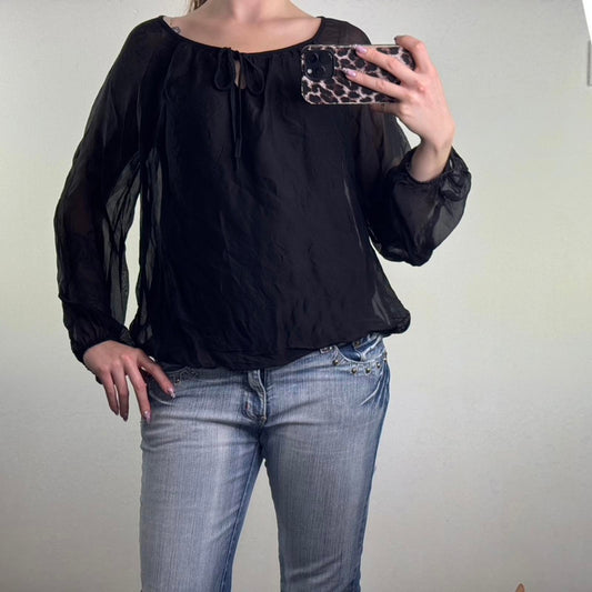 Y2K vintage 100% silk double layered long sleeve top slouchy bow keyhole