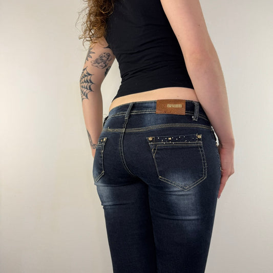 Y2K vintage low rise skinny jeans rhinestone faded denim contrast stitch