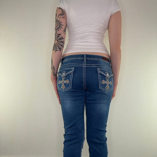 Y2K vintage low rise denim skinny jeans rhinestones distressed