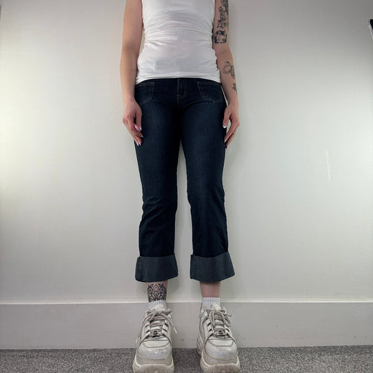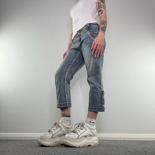 Y2K vintage low rise capri jeans denim don’t touch slogan faded turned up