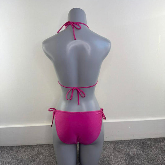 Y2K vintage shimmer matching bikini set halter neck ruffle frilly hot pink