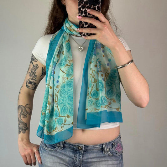 Y2K vintage sheer scarf butterfly rose thorns polka dot