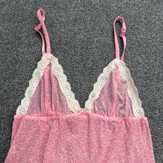 Y2K vintage sheer mesh leopard print nightie slip dress lace trim nightdress