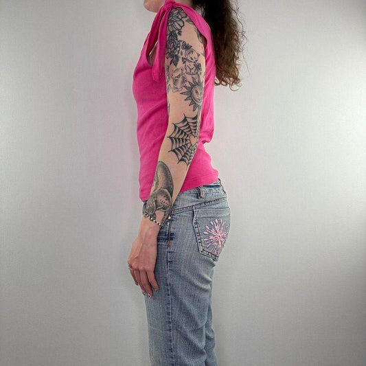 Y2K vintage shoulder tie knot bow tank top v neck hot pink