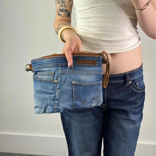 Y2K vintage side crossbody denim bag suede blue brown adjustable strap clutch