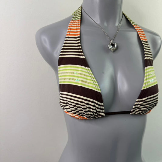 Y2K vintage sequin stripe halter neck stripe bikini top brown orange green cream