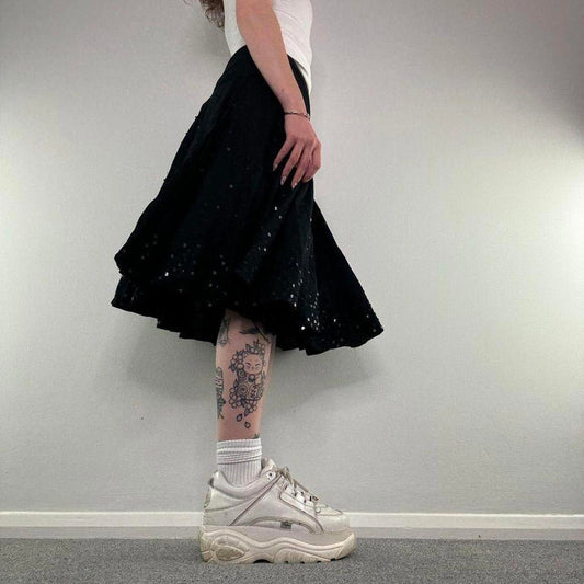Y2K vintage sequin midi skirt boho floaty bow a line knee length emebellished