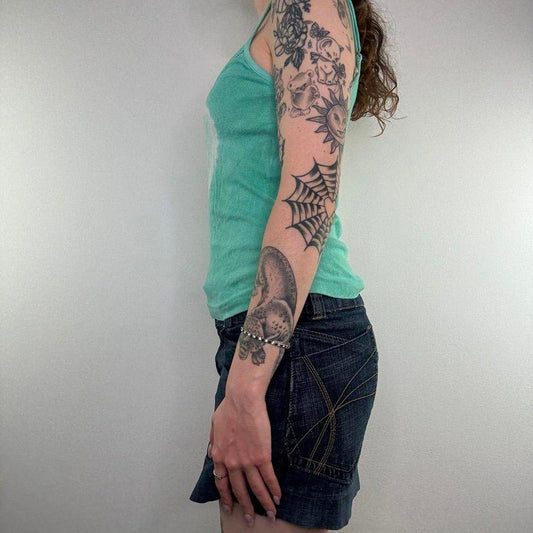 Y2K vintage tattoo graphic print rhinestone baggy tank top