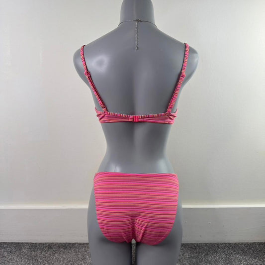 Y2K vintage stripe pink sparkly bikini set matching swimwear orange glittery