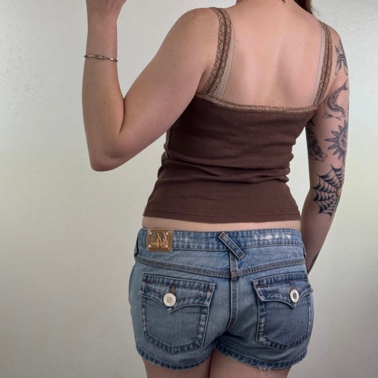 Y2K vintage Tammy cami top stretchy fitted lace trim brown stripe