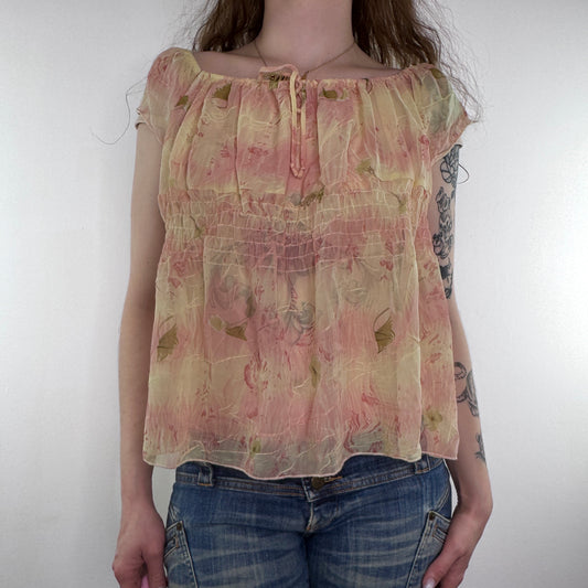 Vintage 70s Janice Wainwright silk floral embroidered pleated floaty blouse top