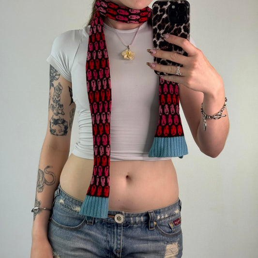 Donna Wilson wool scarf brown pink red faces pattern print blue