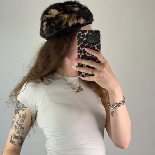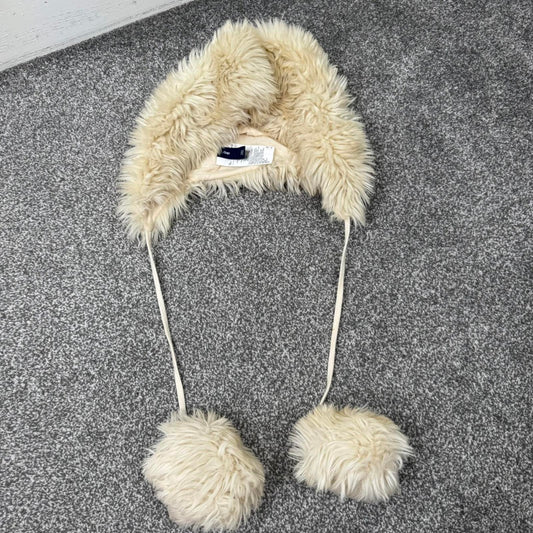 Vintage Gap faux fur trapper hat with oversized pom poms cream unisex