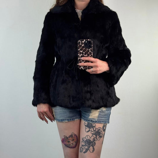 Vintage genuine fur short coat hook and eye bow v neck collared side pockets