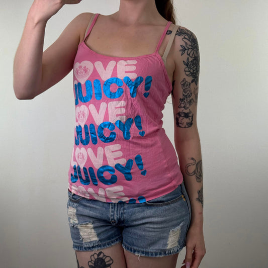 Vintage Juicy Couture cami top love heart pink blue strappy top graphic print