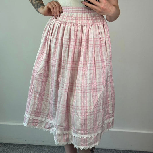 Vintage high waist gingham tartan coquette maxi skirt a line frilly kitsch