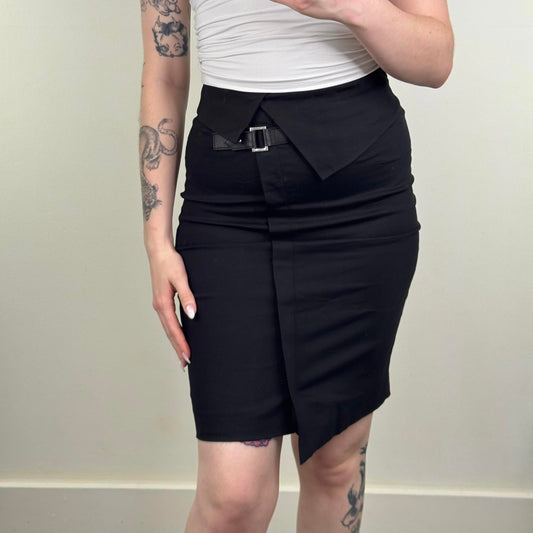 Vintage Karen Millen midi skirt above knee length buckle tailored black office