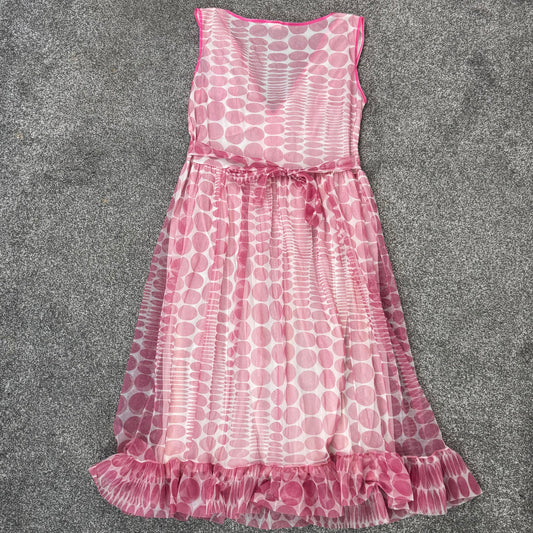Vintage night dress polka dot frill mesh tiered bow pink white satin bow overlay