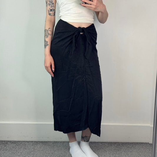 Y2K vintage tie front knot twist maxi skirt black lightweight floaty summer