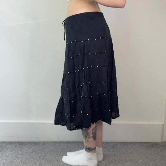 Y2K vintage tiered boho sequin a line floaty midi skirt boho festival cotton