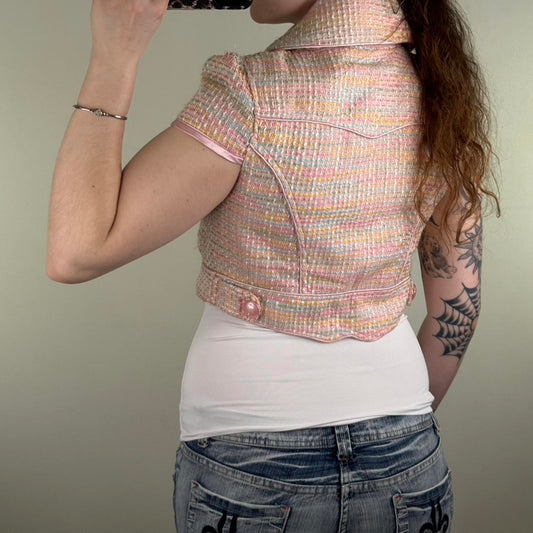 Y2K vintage tweed cropped jacket pastel button up baby pink tailored fitted