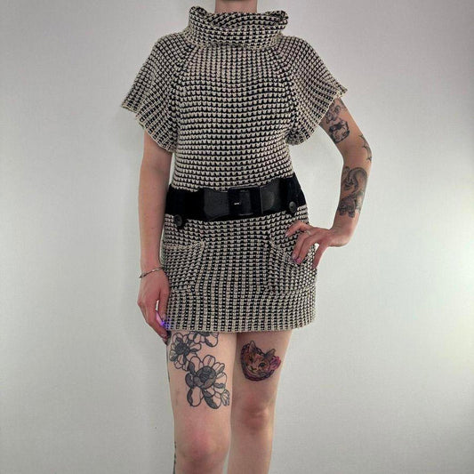 Y2K vintage turtleneck belted knit mini dress roll neck belt chunky knit